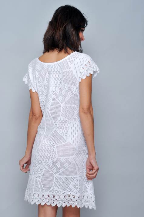 Dress whiteWith liningSleeve short detail of lace in the bass and sleeves