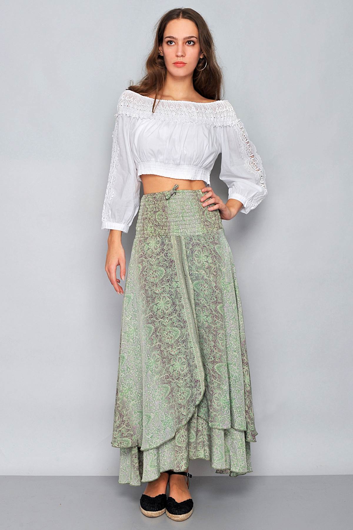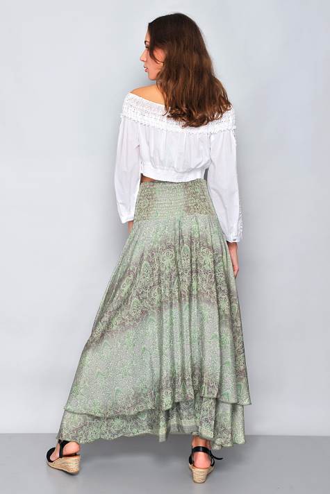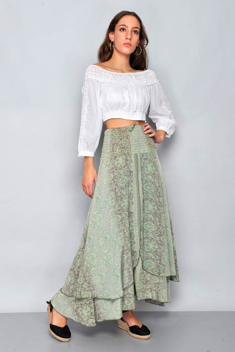 Falda cintura elástica.Distintos verdes.Varias capas superpuestas.
