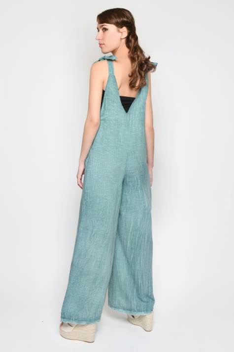 Mono largo tipo petoLazos en los tirantesBolsillos lateralesColor acid wash