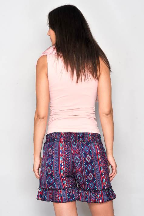Pantalón cortoCintura elástica y cuerdaDibujos geométricos Volante