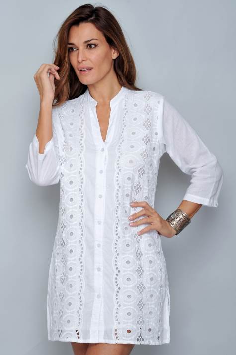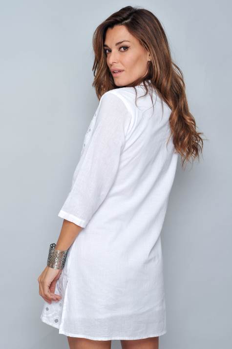 Vestido con forroManga largaCuello maoDetalles de bordados y botones en parte delantera