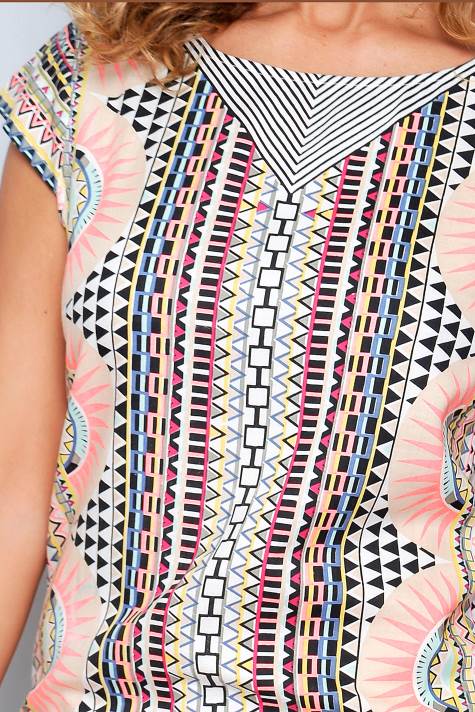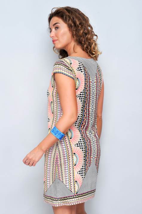 Vestido sin mangaFrontal en grecas verticales geometricasCuello en pico